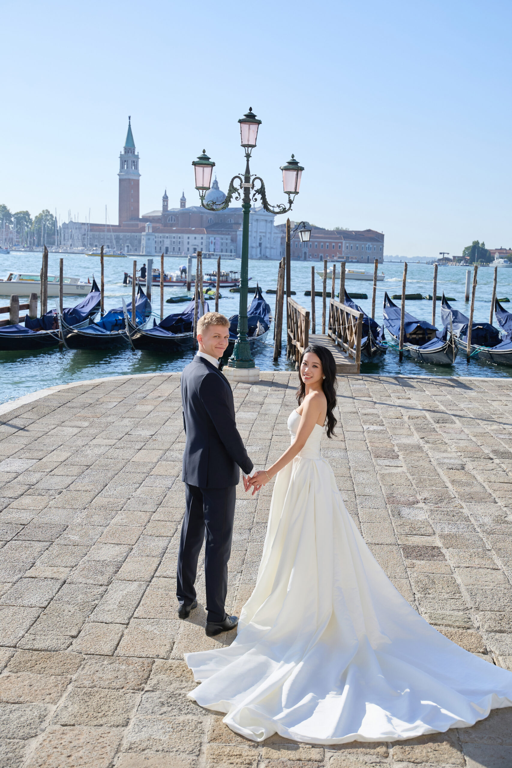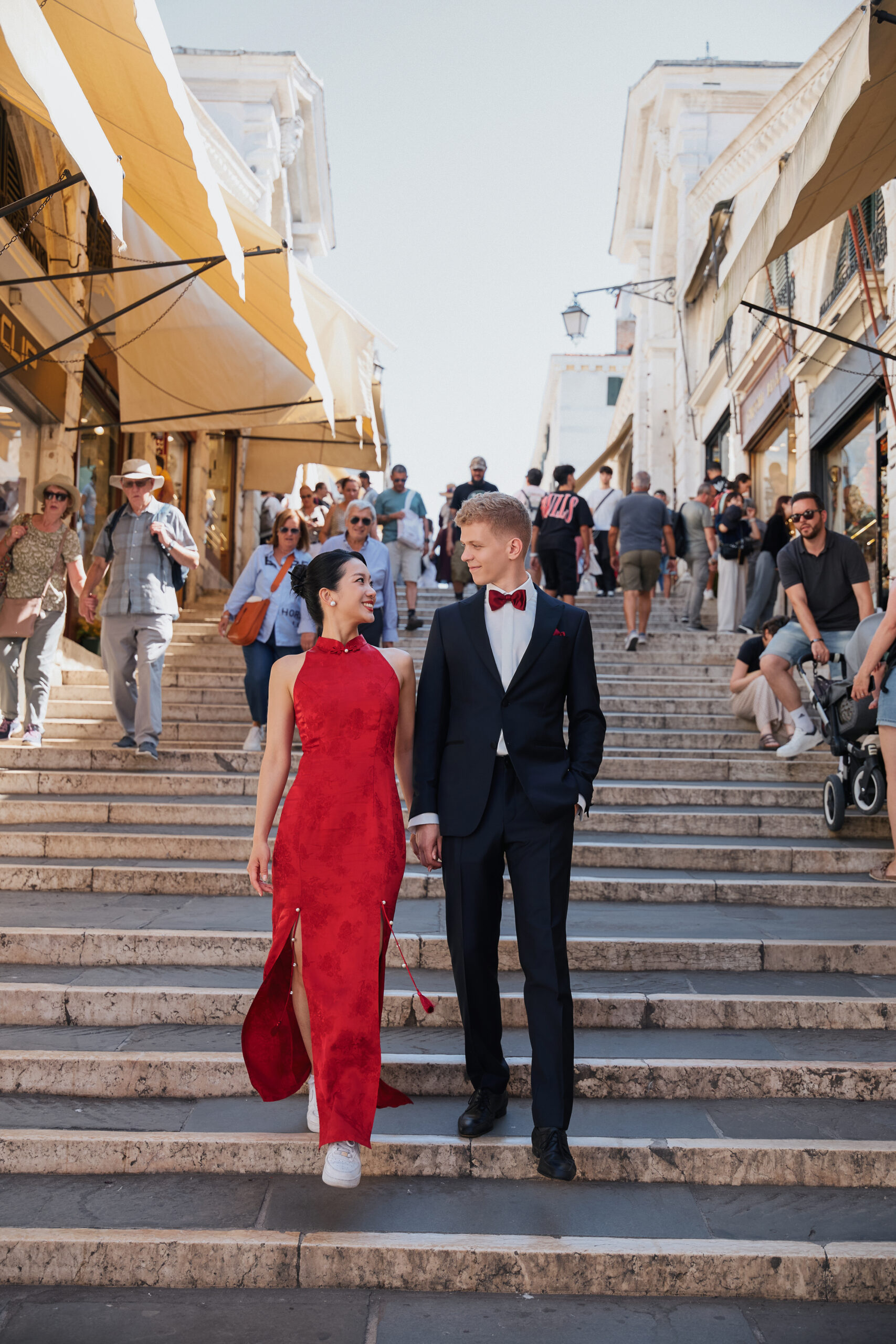 Nur wenige Monate später stand die erste große Herausforderung vor uns: mein Job führte mich nach London. Unsere Bilder waren kaum aufgehängt, da war die Fernbeziehung schon Realität. Doch wir machten das Beste daraus – besuchten uns, entdeckten „unsere Ecken“ in London und merkten, dass Entfernung uns stärker machte. Anfang 2025 ging es für mich zurück nach München – zurück zu uns. Und in diesem Gefühl von „Wir sind bereit“ folgte der Moment, der alles veränderte: Am 15. Mai 2025, in Venedig auf dem Markusplatz, stellte ich die Frage aller Fragen. Nach einembombastichen 8 Gänge Dinner, ein wenig aufregend – und trotz eines beinahe verräterischen Kellners, welchen du aber nicht ganz folgende konntest, unvergesslich schön.
